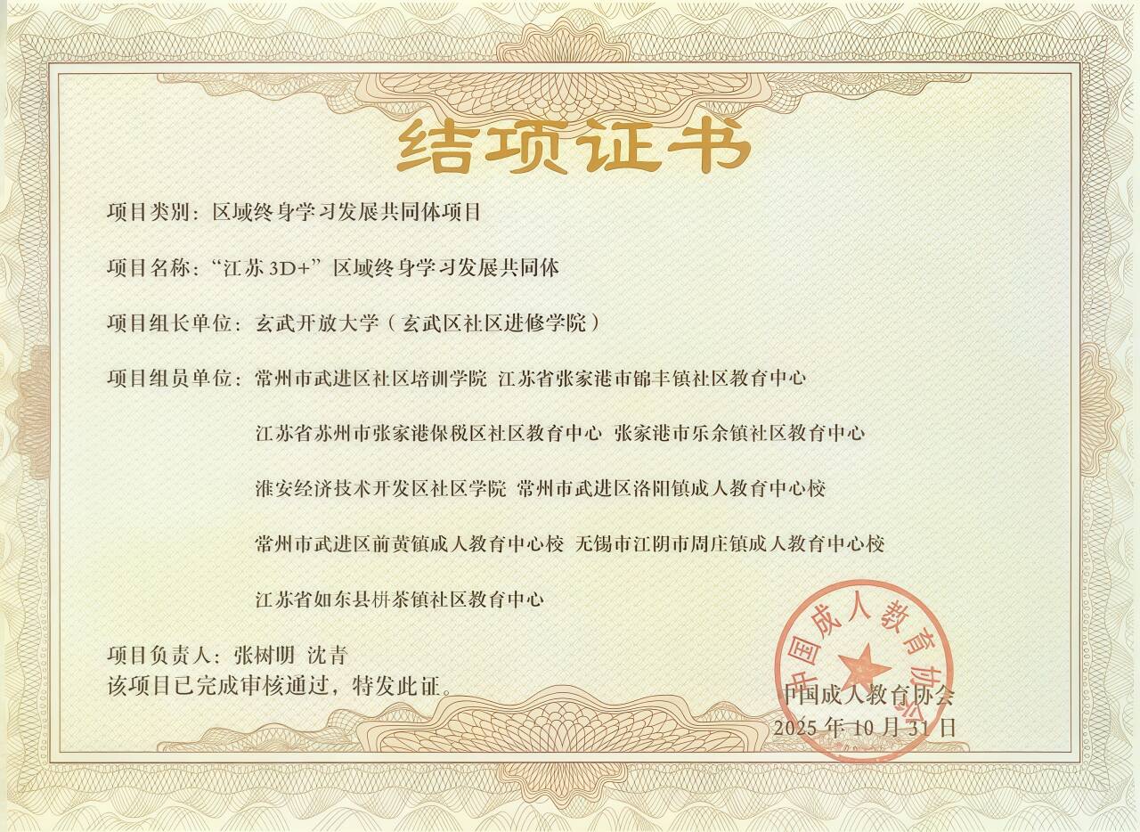 区域终身学习发展共同体项目结项证书