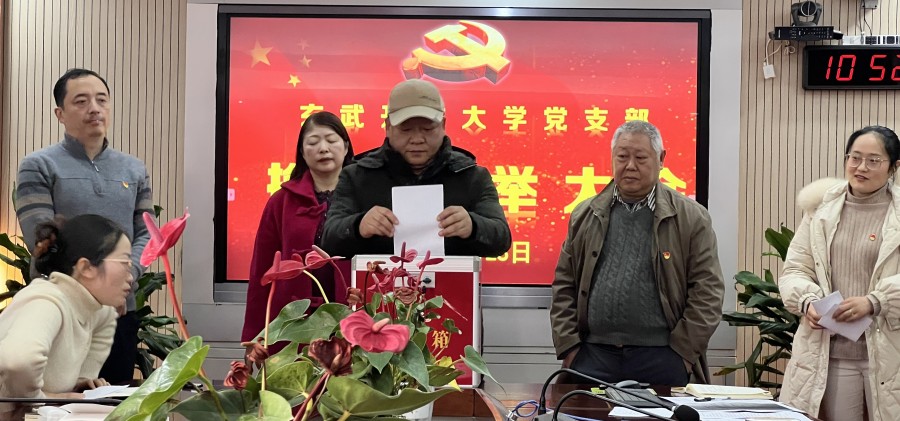 12月28日,玄武开放大学党支部在学校312会议室召开党员大会进行换届选举,学校全体党员参加会议。