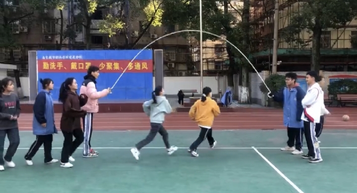 此次运动会项目共四项:看谁先出圈、背靠背运球、沙包套礼物、缘分跳长绳等。形式新颖,以较强的趣味性见长。乐在玩中学,参赛选手在运动场上展示自己的耐力和体力,权变着阴谋和阳谋,体、智争锋,好不精彩!同学们将比赛场地围得水泄不通,鼓足了劲为选手们加油,汗水与笑声,覆盖了整个操场……大家摒弃了刚开始的自负与自悲、抱怨和逃避,学会了欣赏与包容、关心和关爱、分享和奉献,学会了合作才能共赢,品到了责任和担当的幸福感。