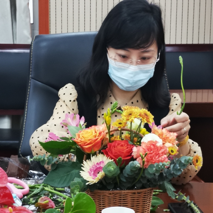 为营造热爱生活、追求美好生活的良好氛围,丰富辖区居民的精神文化生活,3月11日,玄武开放大学、玄武区社区进修学院联合锁金村街道社区教育中心共同举办了“花语传情  快乐巾帼”花艺技能培训,特邀玄武区社区教育优秀志愿者,专业花艺师肖老师走进学院,给来自7个街道社区教育中心主任、辖区合作单位部分同仁、居民上了一堂别开生面的花艺技能培训课程。江苏开放大学社会教育服务指导中心副处长张曌曌来我院指导并参与体验学习,玄武区社区进修学院业冰院长对省社指张处长的莅临指导表示感谢。