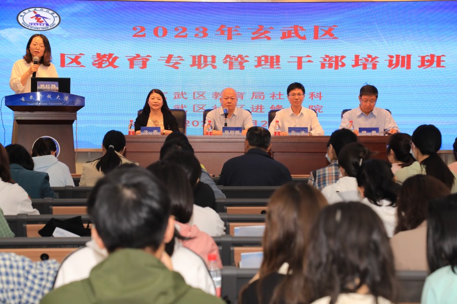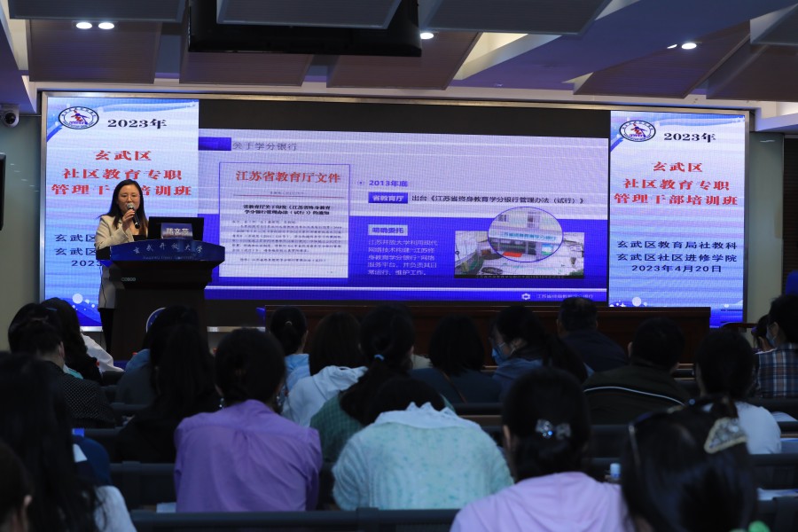 为不断提高玄武区全体社区教育专职管理干部的业务水平和工作能力,4月20日,由区教育局社教科、区社区进修学院共同举办的主题为:学习贯彻党的二十大精神,推动老年教育高质量发展——2023年玄武区社区教育专职管理干部培训班在玄武开放大学开班,由学校邓红静老师主持,玄武开放大学校长张树明、区社区进修学院院长业冰、区教育局社教科缪勇主任、区社区进修学院办公室主任沈青参加了开班仪式。本次培训班共分为线下(4月20日)、线上(4月26日)两期,培训对象为全区七个街道的社区教育中心主任和五十九个社区居民学校的专职管理干部。
