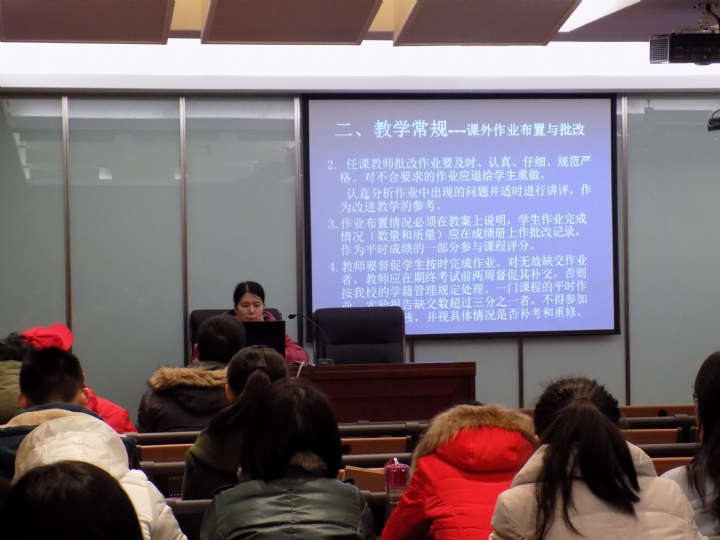 会议首先由教务处李青主任对学校教学常规工作的基本环节,包括备课、上课、作业、辅导、考核、课程总结、课堂教学管理和听课制度提出了具体要求。
