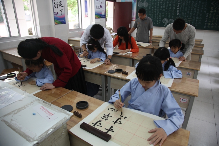 童蒙时期是接受传统文化教育的最佳时期,好比一个扎根和立规矩,有了这个根和这个规矩,才能够“成方圆”。书法艺术是国学文化中的精粹,是国学的传承与载体。它与中国文化相表里,与中国民族精神成一体。