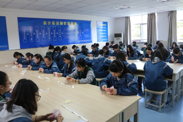 本学期,会计综合实验室正式投入使用,主要承担会计专业点钞课程和会计手工实训课程教学使用,一学期使用下来,任课教师与学生反映良好。