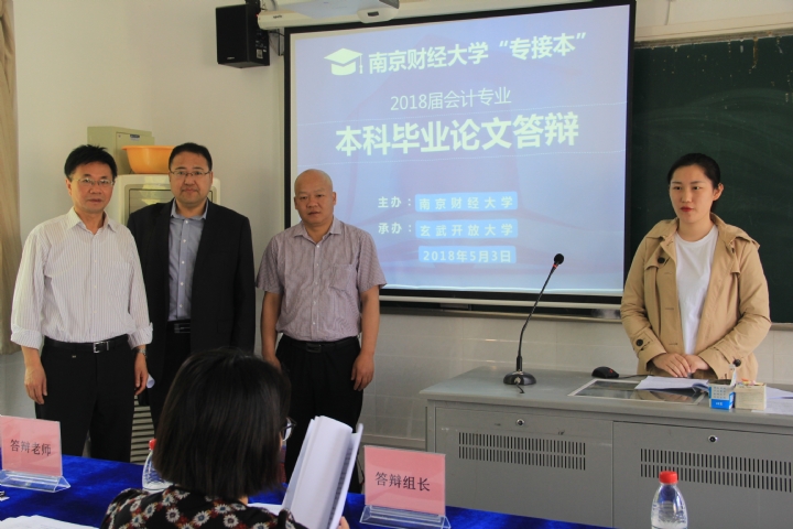 5月3日上午8:30,玄武开放大学16级接读南京财经大学会计专业共32名专接本学生进行了毕业论文答辩,南京财经大学会计学院副院长沈永健教授莅临现场指导答辩工作,学校业冰校长、张树明副校长、李青校长助理以及部分骨干教师作为答辩组成员参加了本次答辩活动。