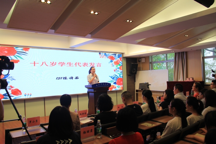 首先,陈诗茹和秦纪越同学代表全体15级的全体同学对学校老师和父母表达了深深的感恩之情。
