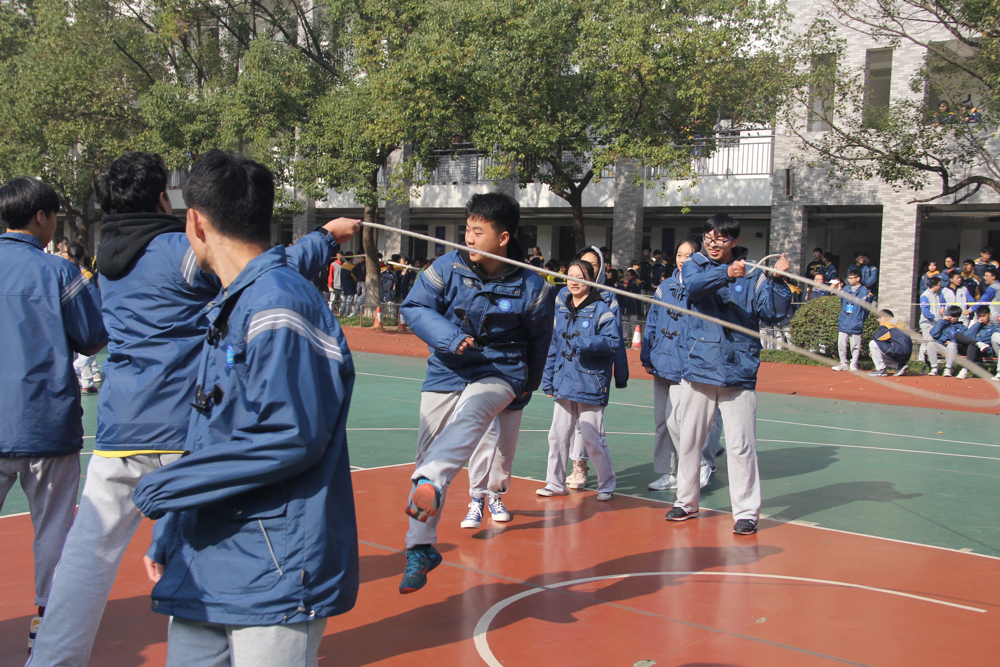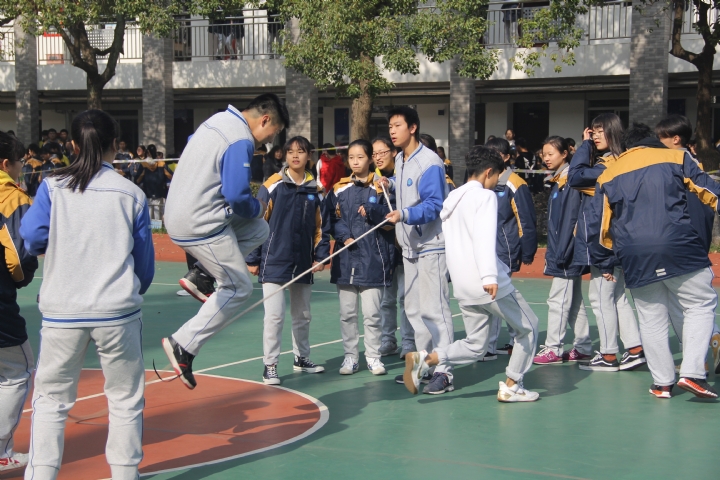 为全面推进素质教育增强学生体质丰富校园文化生活1128中午12:30,玄武开放大学在学校操场办了冬季长绳比赛。