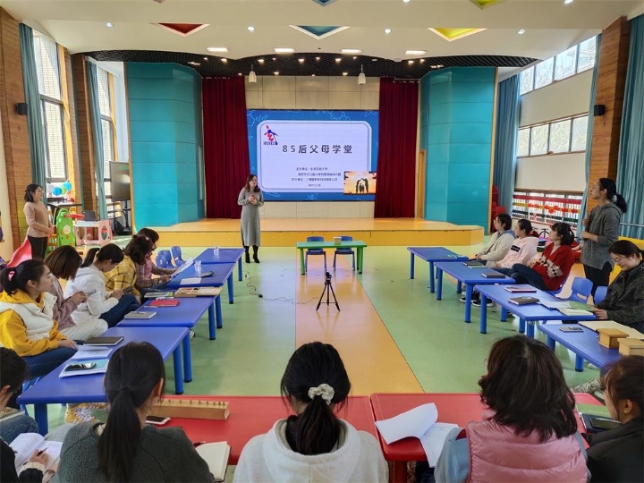 3月25日下午,玄武开放大学的“玄武社区学堂”子品牌“85后父母学堂”走进南京市长江路小学附属银城幼儿园。本次培训由玄武开放大学三槐堂教育课程基地邀请到南京蒙特梭利溪荷幼儿园的曹洁老师,为银城幼儿园、博爱分园全体教师带来了《幼儿园蒙氏操作》专题培训,反响热烈。