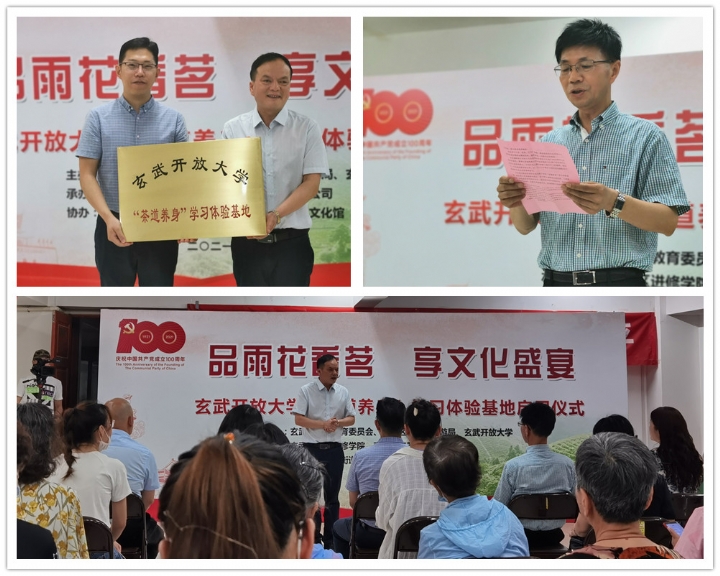 2021年6月1日上午,由玄武区社区教育委员会、玄武区文化和旅游局、玄武开放大学主办,玄武区社区进修学院、南京盛峰茶业有限公司承办,玄武区孝陵卫街道社区教育中心、玄武区文化馆协办的玄武开放大学“品雨花香茗、享文化盛宴”——“茶道养身”学习体验基地启用仪式,在国家级非物质文化遗产雨花茶制作技艺保护单位南京盛峰茶业有限公司成功举行。玄武区文化和旅游局副局长张皞、玄武开放大学校长业冰、玄武开放大学副校长张树明、玄武开放大学社区教育办公室主任沈青、南京盛峰茶业有限公司董事长陈盛峰、孝陵卫街道社区教育中心主任孙学忠、孝陵卫街道部分居民代表参加了本次启用仪式。
