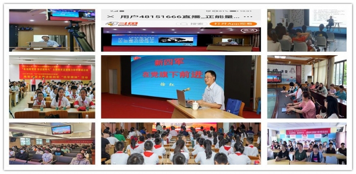 活动的第二阶段,由徐红将军以《新四军在党旗下前进》为题在张家港保税区金都社区主讲、联盟其他六家单位通过“斗鱼”直播实时收看。徐红将军围绕铁军和铁军精神的由来、新四军铁军精神的主要内涵、如何更好地弘扬铁军精神三个部分,以翔实的史料、鲜活的实例,用一个个鲜活的案例向大家再现了新四军在中国共产党的领导下,从无到有、由弱到强的过程,带领大家领略新四军的伟大历史功绩,展示了先辈勇敢坚毅、无畏担当、一心为民的革命形象,诠释了新四军“铁军精神”的内涵。给在场的和联盟外地五家单位分别组织居民一起收看,给收看的居民享受了一场红色文化的思想盛宴。直播接力分会场,由常浩如主任同步在张家港锦丰镇社区学校以《历史和人民选择了中国共产党》为题,常浩如主任以丰厚的历史史料,深入的采访和历史见证人的交流,从建党初期,中国共产党的创立和各时期党的领导人李大钊、瞿秋白、毛泽东等人的生平事迹,并通过张太雷、恽代英等革命先驱的小故事,讲述革命先辈们为了实现崇高的革命理想如何前赴后继,为民族独立,人民当家作主抛头颅、洒热血,令在场的老党员及居民朋友们对我党光辉的历程有了更深入的了解,深感今天的幸福生活来之不易。让大家再次明白一个道理“没有共产党就没有新中国”,看清一个事实“中国共产党领导我们从胜利走向胜利”,树立一个信念“永远跟党走”。