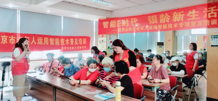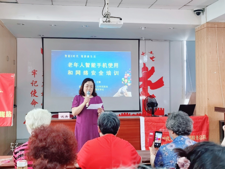 为普及老年朋友智能手机使用和网络安全知识,2022年6月17日,“博学玄武”智慧助老——老人学用智能手机培训即富贵山社区社区居民学校第一期“智能E时代 银龄新生活——老年人运用智能技术专项普及培训”开班,参加此次培训的有来自玄武开放大学、玄武区社区进修学院办公室主任沈青、后宰门派出所民警姜凯、大学生志愿者、社区老年居民40余人。活动由富贵山社区居民学校校长王燕主持。