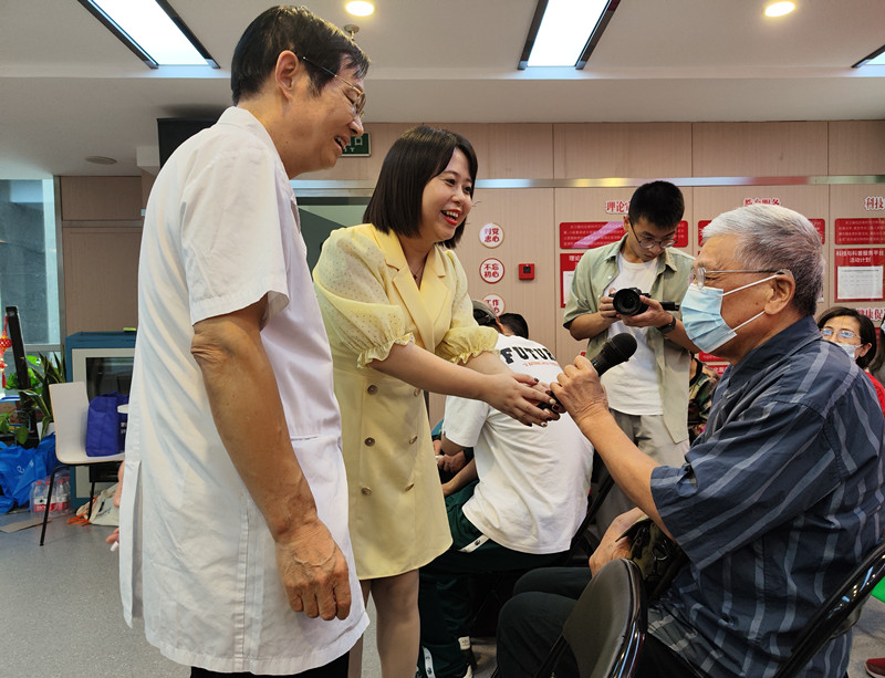 讲座后,有被耳鸣困扰许多年的一位李爷爷,现场提出了问题。这位从江宁区远道而来的老人家,用洪亮的声音叙说了自己的耳鸣史:起初不算严重,后来长期耳鸣,现在说话都不由自主地提高声音,因为自己听不清,怕别人也听不清。显然,长期的耳鸣对老人家的听力造成了不可逆的损伤。洪院长耐心地问了对方诸多情况,在简要的问诊后,提出进一步评估检查的建议。对耳鸣患者,尤其是听力已经受损的患者而言,越精细的评估越有助于个性化治疗方案的制定,耳鸣治疗的效果就可能越好。现场,有耳鸣问题的老人不止一位,洪院长都细心解答了大家的问题,对症状相对严重的老人家耐心地叮嘱了一番:作息,用药要注意什么,日常起居事项等等。活动现场很快“火热”起来,老人们将日常生活中遇到的听力损失困扰一一提出,他耐心而专业地进行详细解答和建议并表示,要高度关注老年人听力问题,早干预、早治疗非常重要。