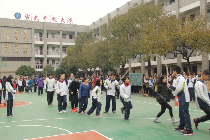 12月5日中午,玄武开放大学的操场上热闹非凡。为了更好地推进冬季体育锻炼的开展,丰富学生的课余生活,活跃校园气氛,学校举行了一场紧张而又有趣的3分钟跳长绳比赛,共有四个年级15个班级参加比赛。