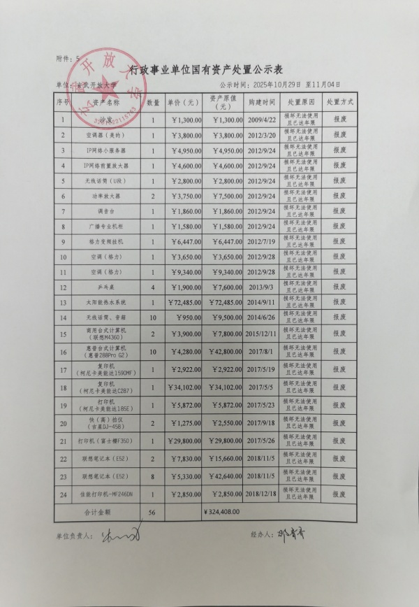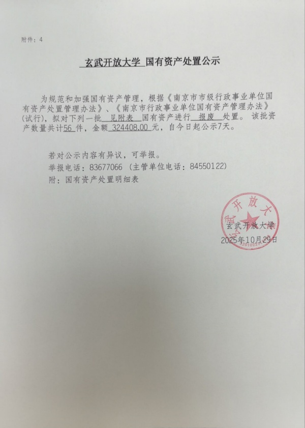 玄武开放大学国有资产处置公示