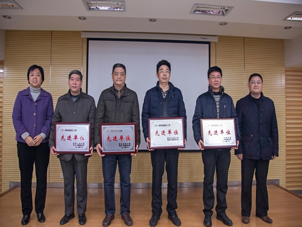 会上,夏桂松校长总结了14年系统工作,布置了15年系统工作,并为2014年在办学、教学管理,招生、社区教育等方面取得显著成绩的单位颁发奖牌,业冰校长上台领取了2014年度招生工作先进单位奖牌,王信芳书记上台领取了2014年度社区教育工作先进单位奖牌。
