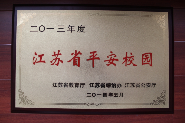 学校荣获2013年度江苏省平安校园