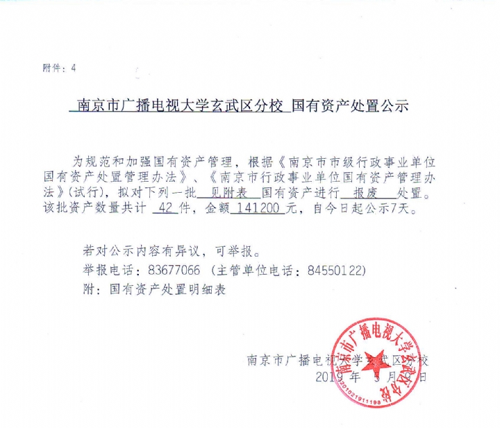 南京市广播电视大学玄武区分校 国有资产处置公示