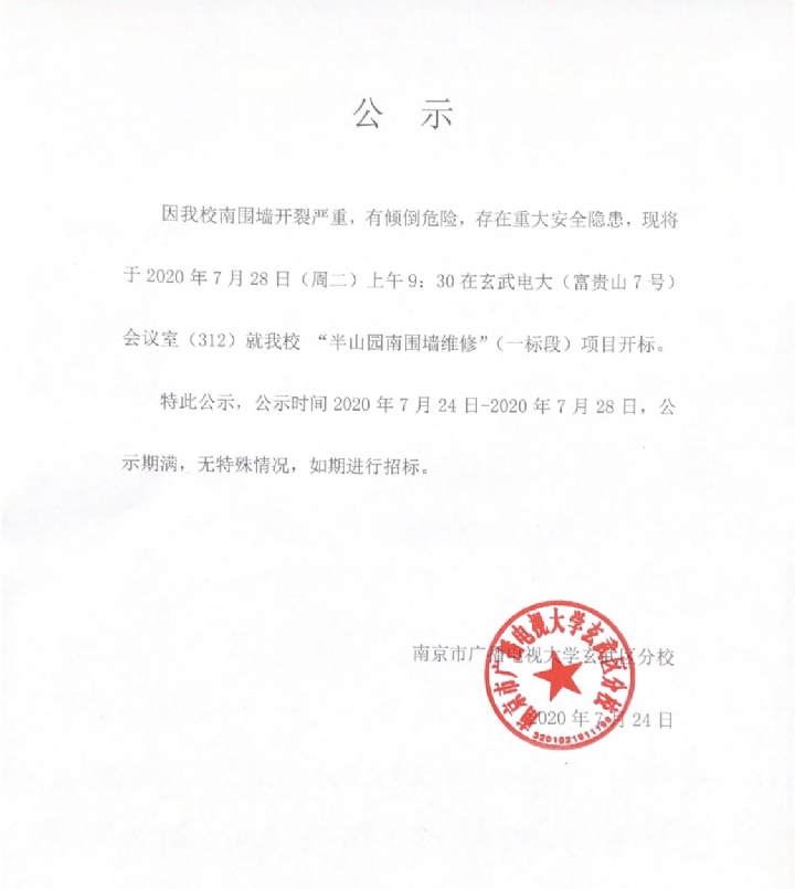 “半山园南围墙维修”项目开标