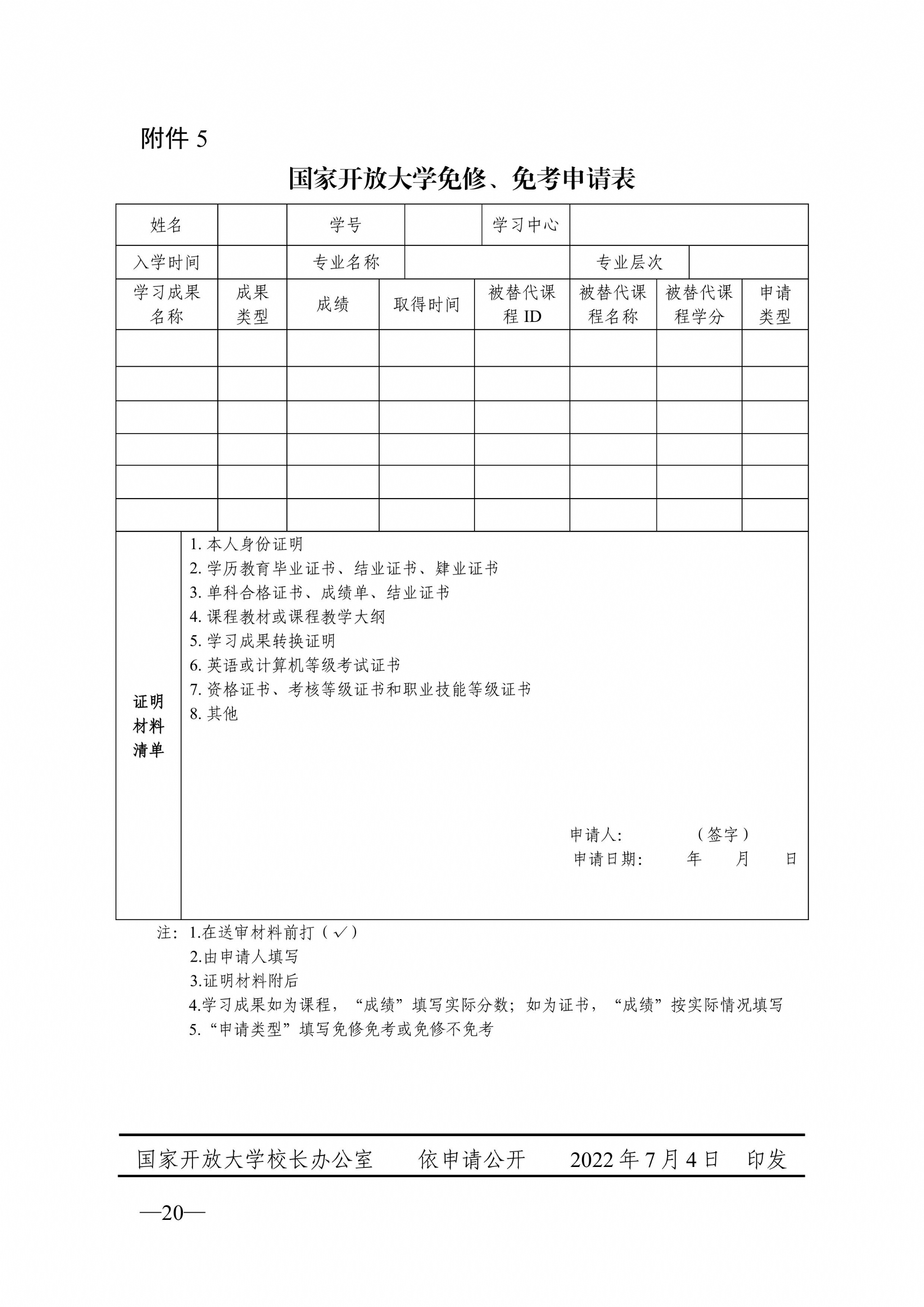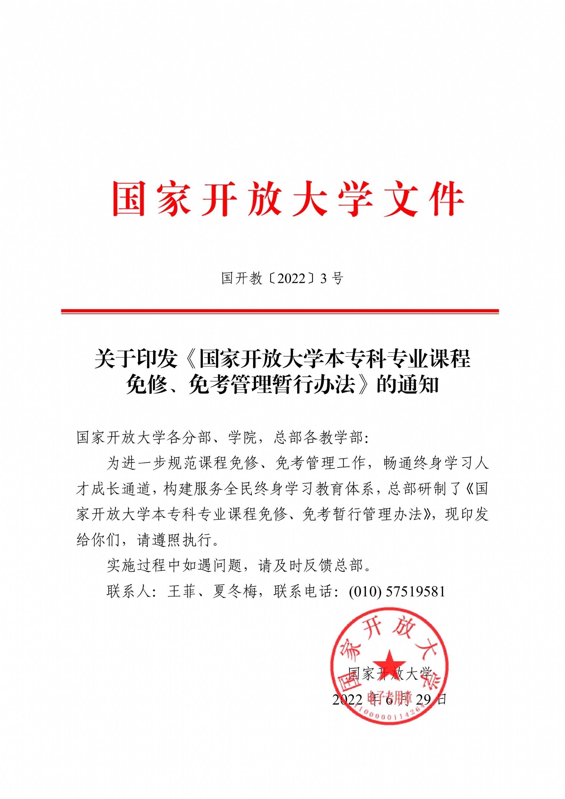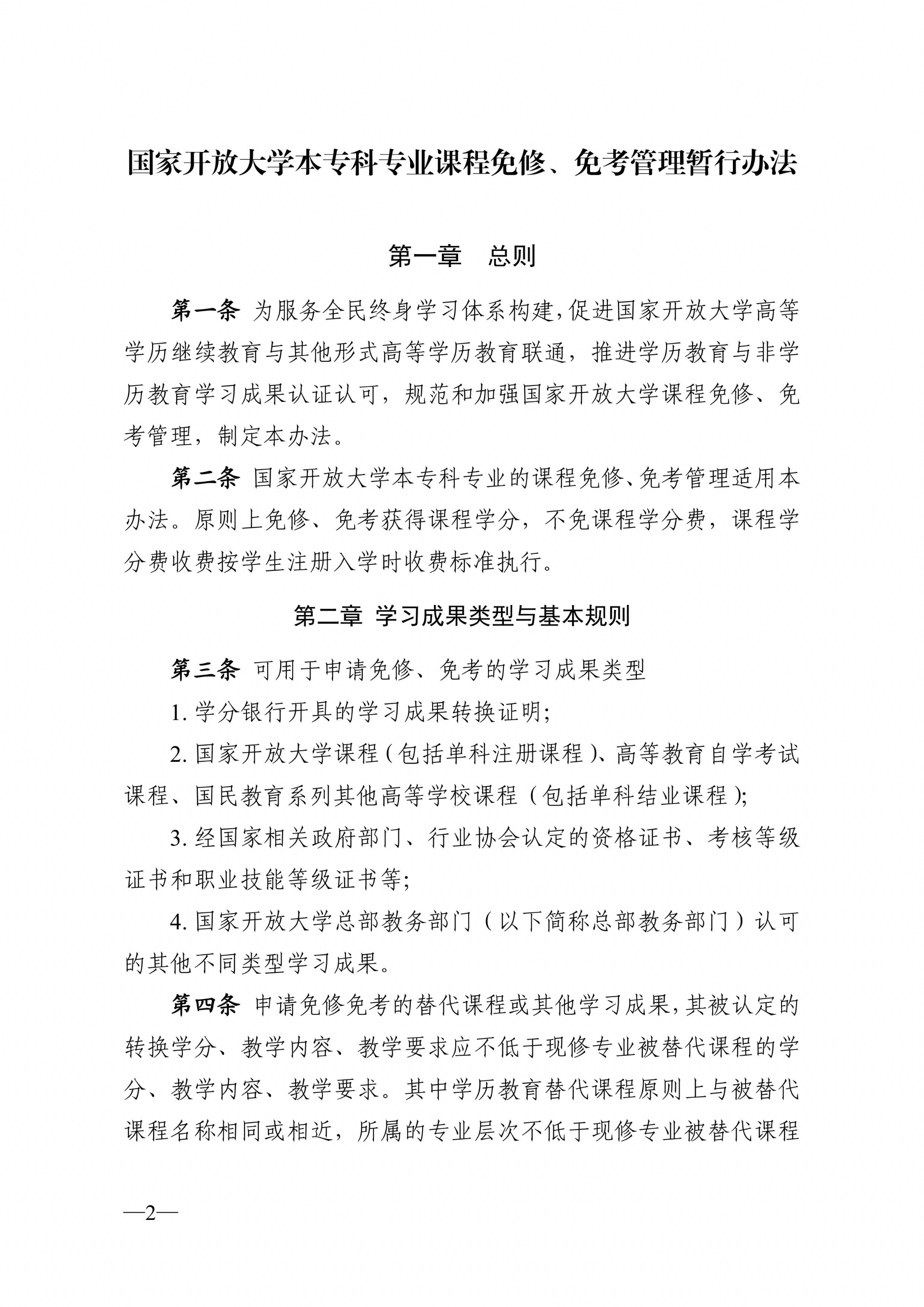 关于印发《国家开放大学本专科专业课程免修、免考管理暂行办法》的通知(国开教〔2022〕3号)