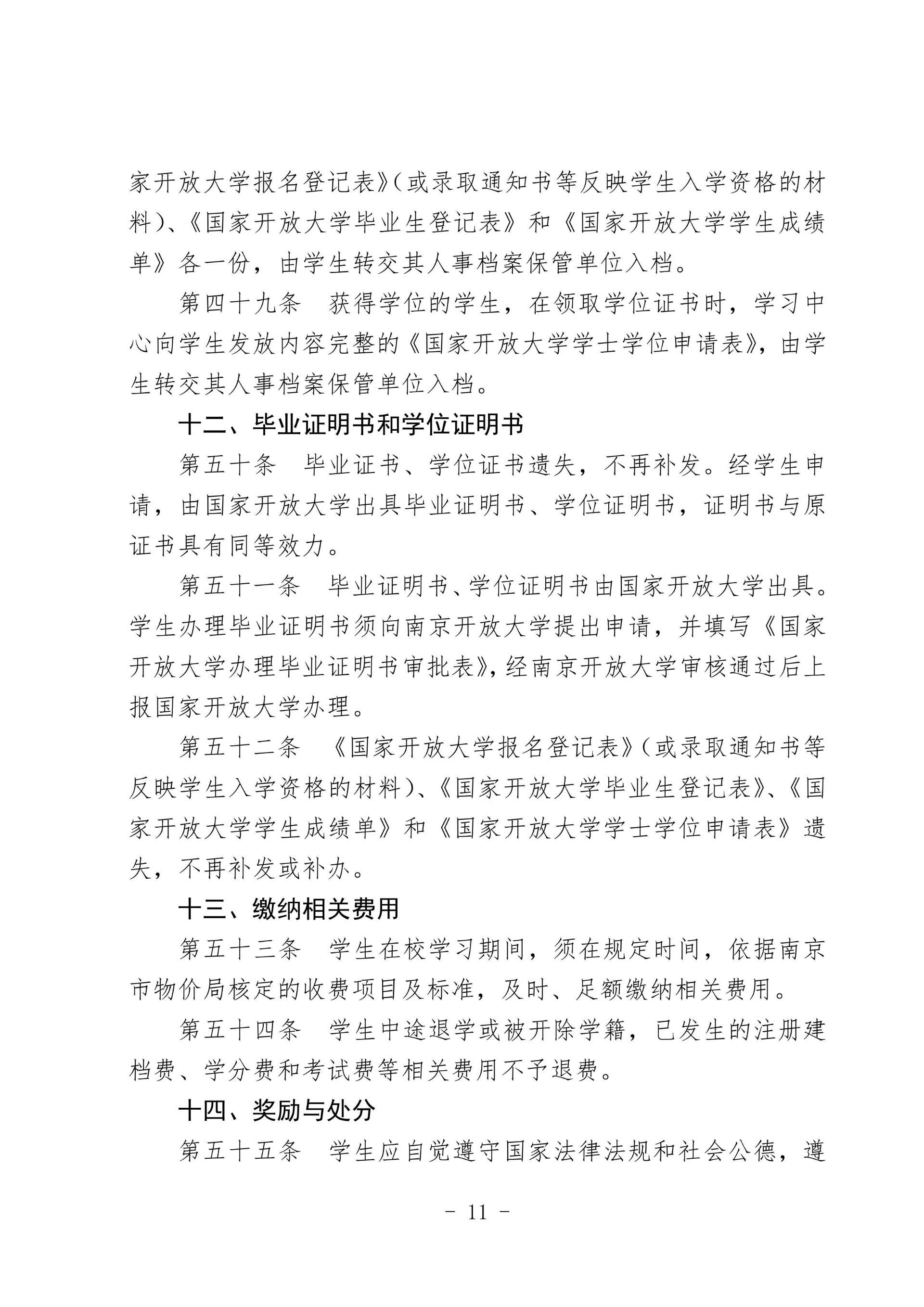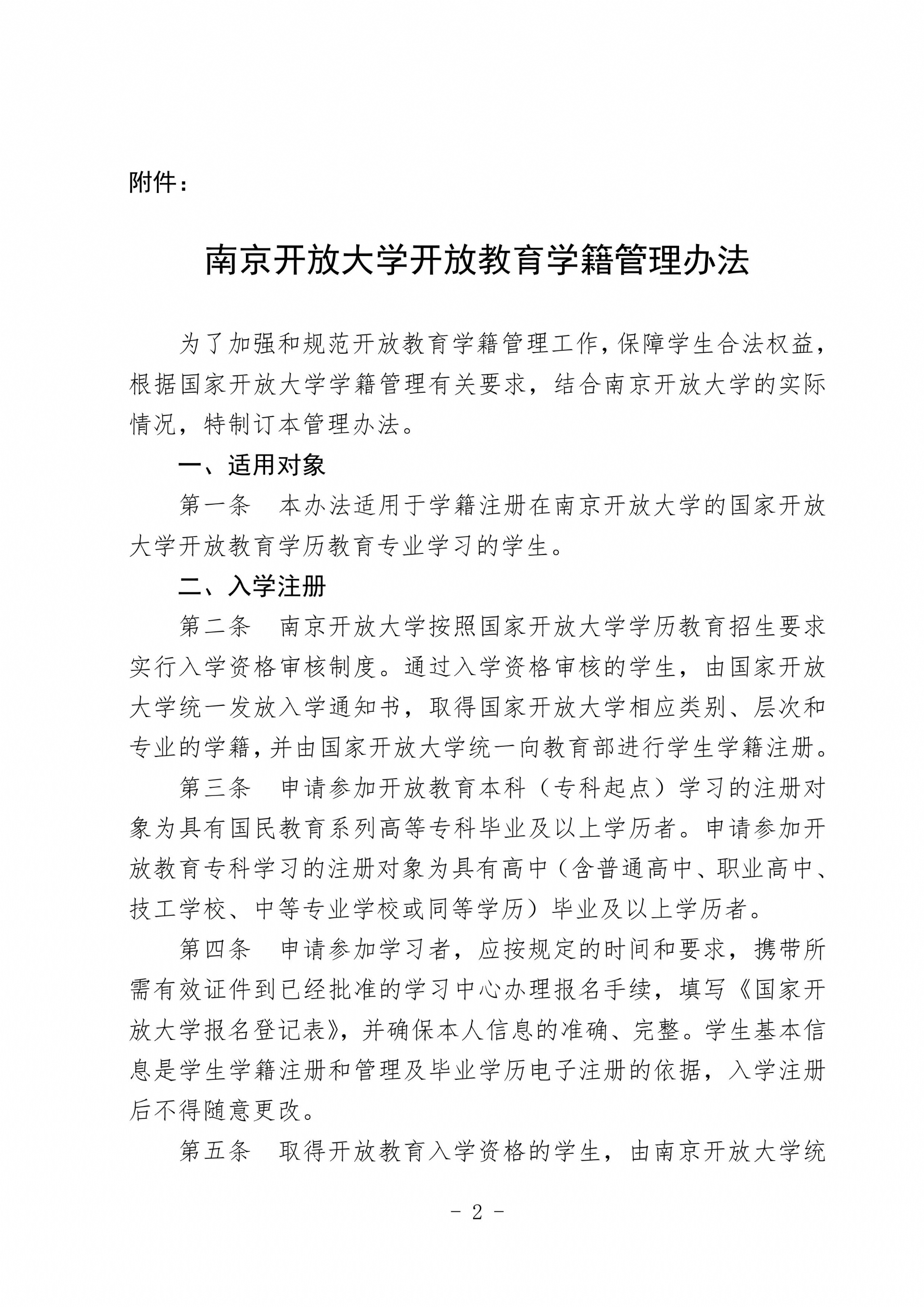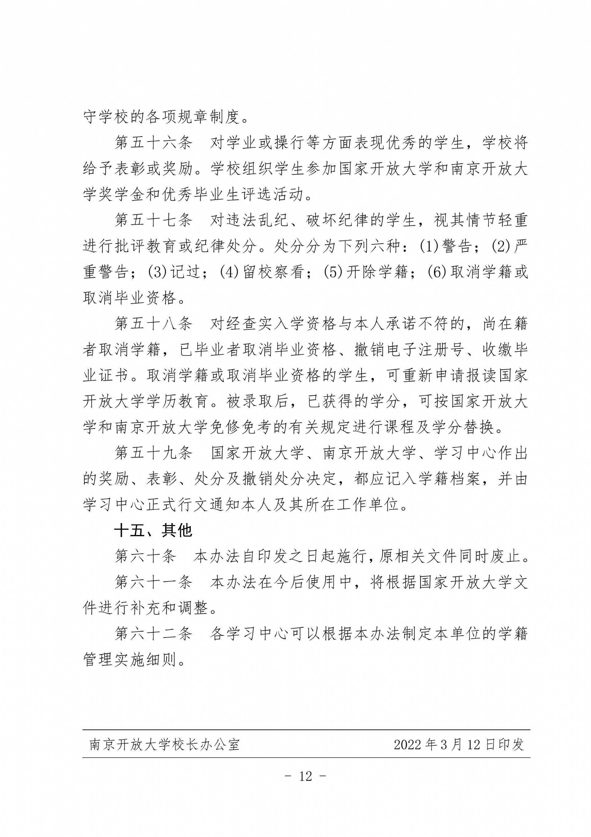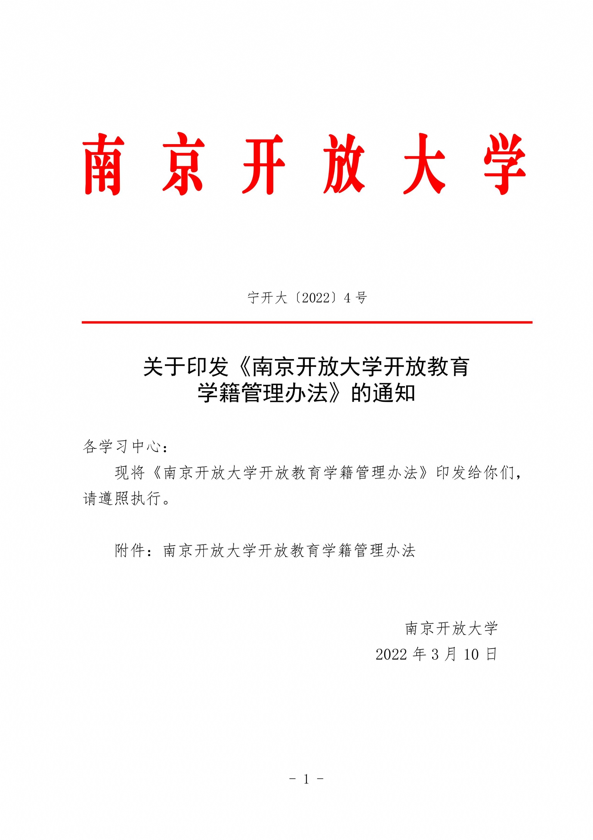 关于印发《南京开放大学开放教育学籍管理办法》的通知