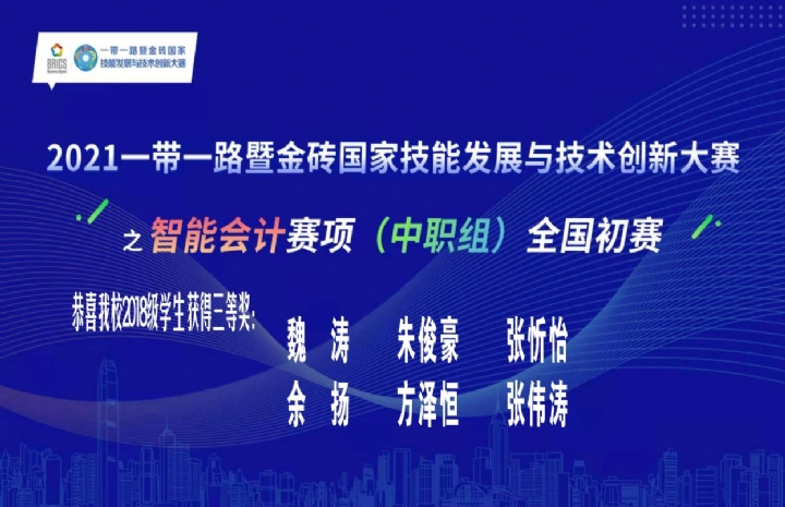 热烈祝贺我校学生荣获金砖国家技能发展与技术创新大赛 之智能会计赛项全国初赛三等奖
