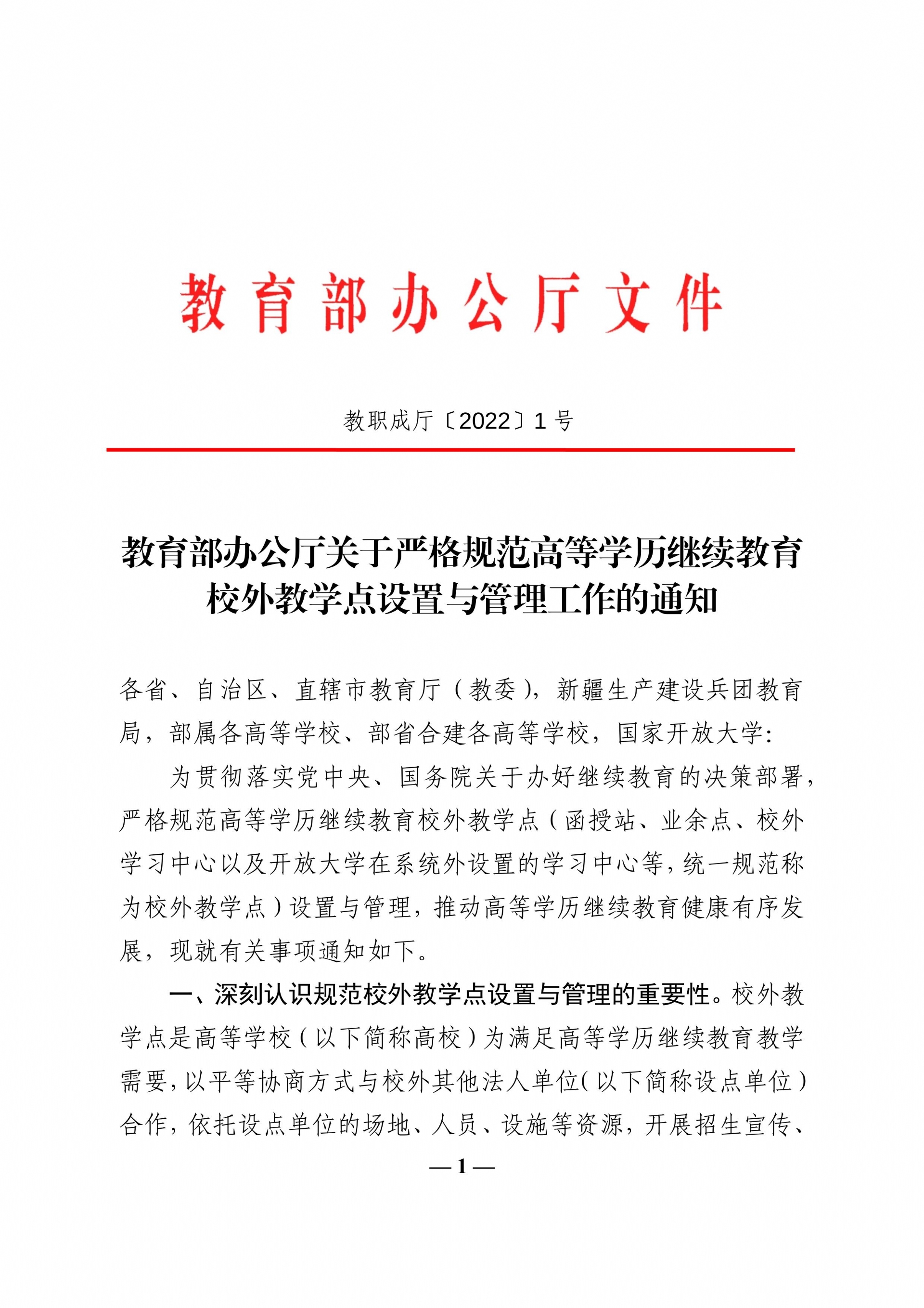 职成厅1号 教育部办公厅关于严格规范高等学历继续教育校外教学点设置与管理工作的通知