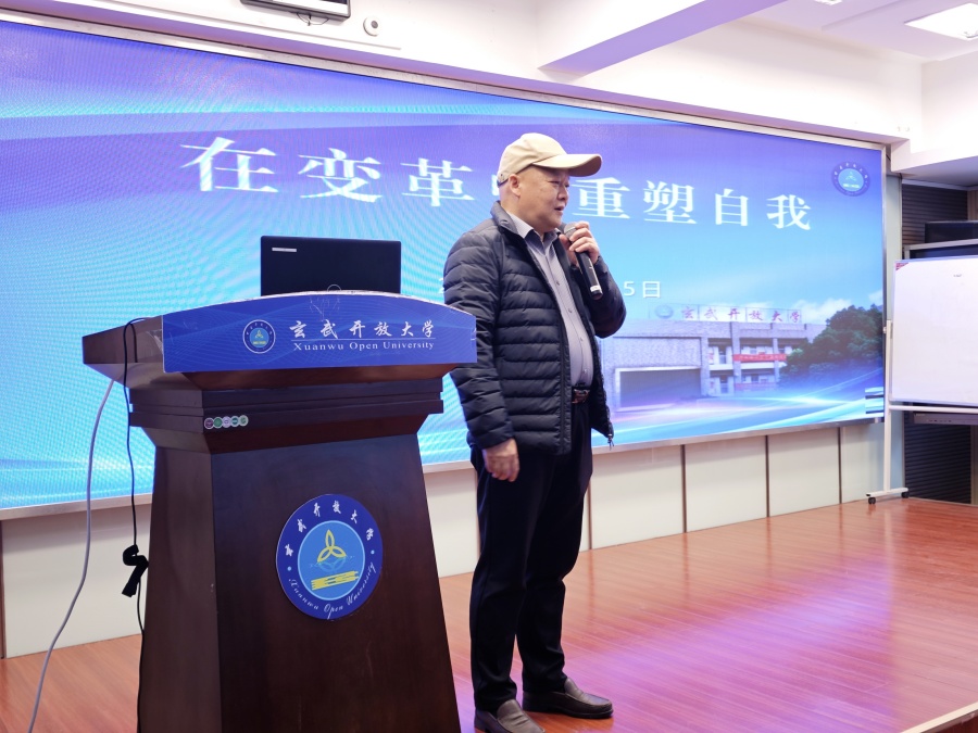 2025年3月15日上午,南京开放大学玄武分校书记、校长张树明以"在变革中重塑自我"为主题,为成人高等教育全体师生上了一堂生动的开学第一课。