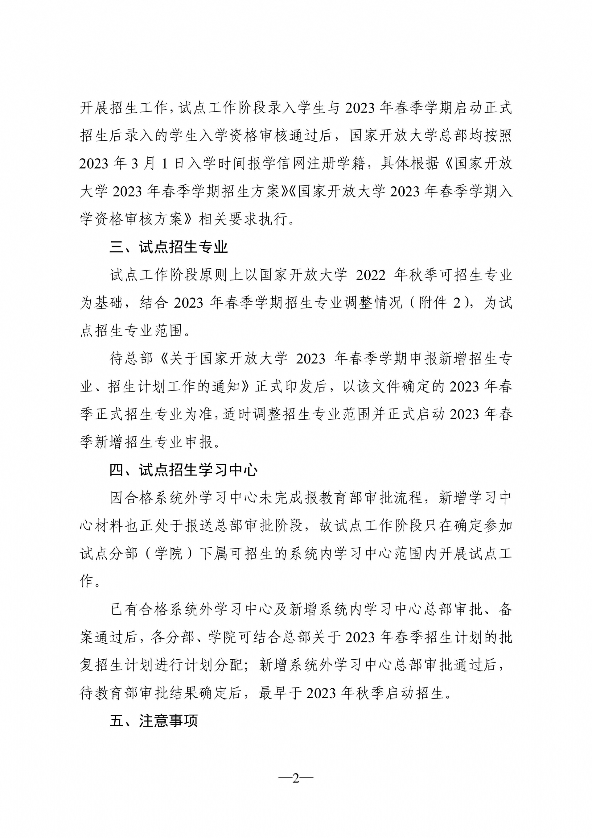 关于开展开放教育2023年春季学期随时报名招生试点工作的通知(国开招函〔2022〕12号)