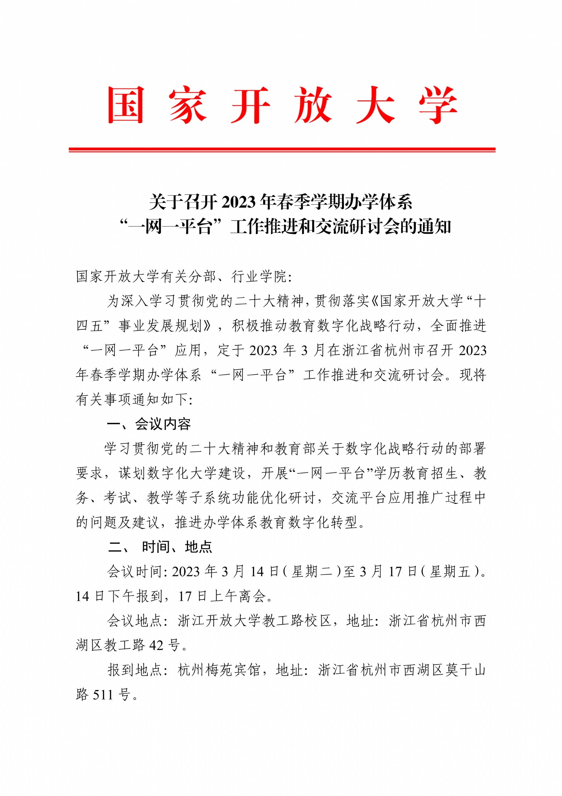 关于召开2023年春季学期办学体系“一网一平台”工作推进和交流研讨会的通知