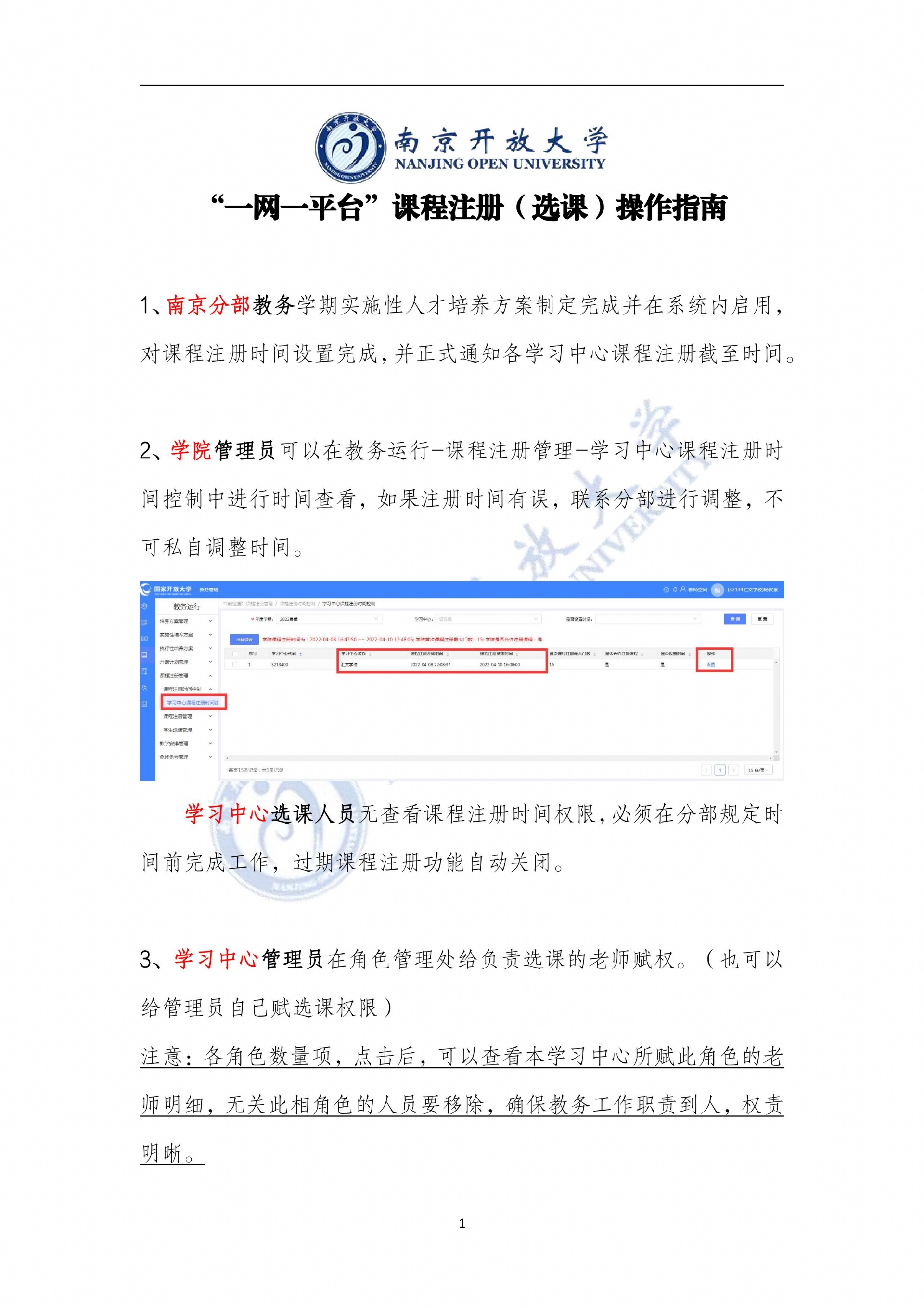南京开放大学学习中心一平台课程注册(选课)操作指南(简版)