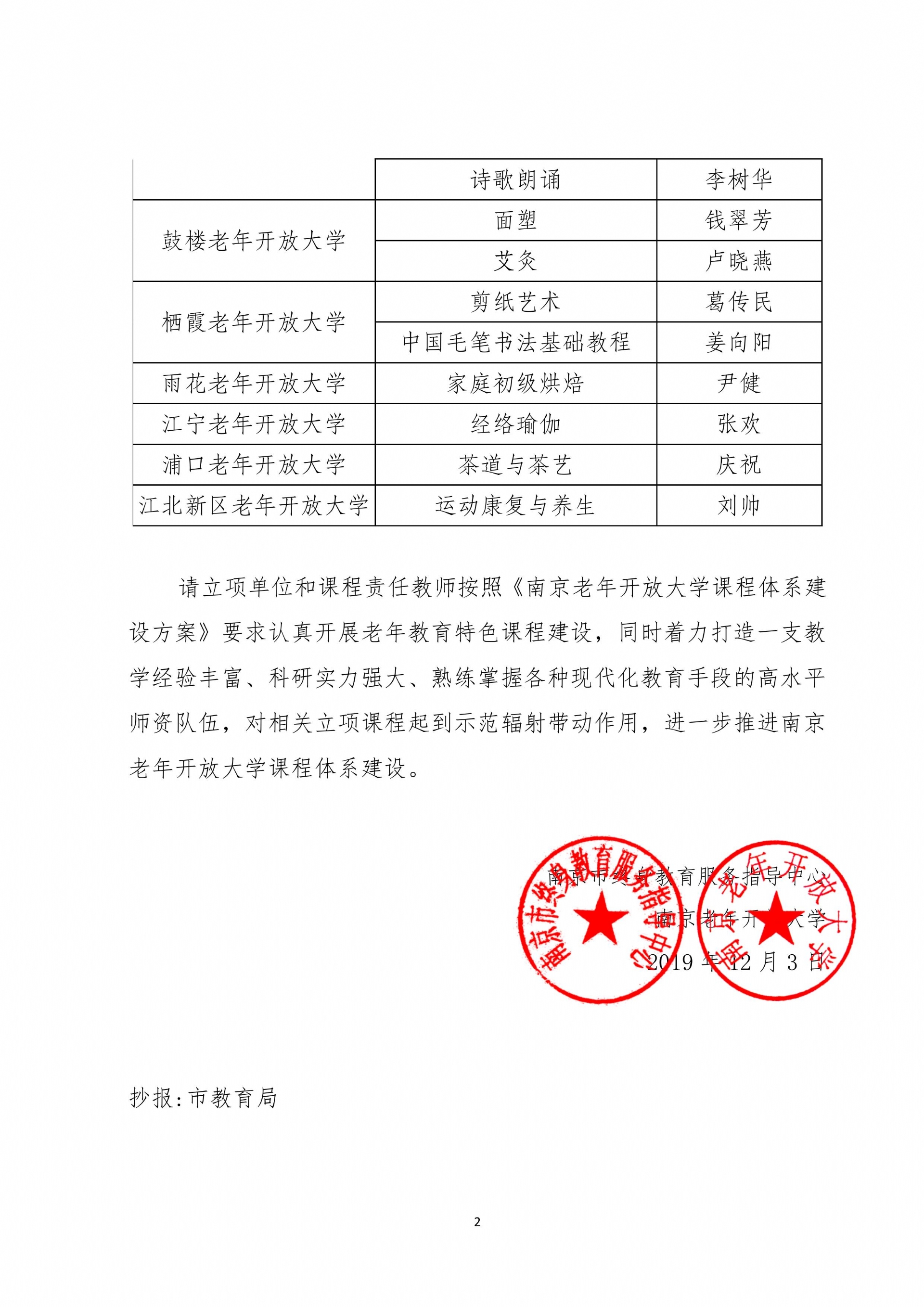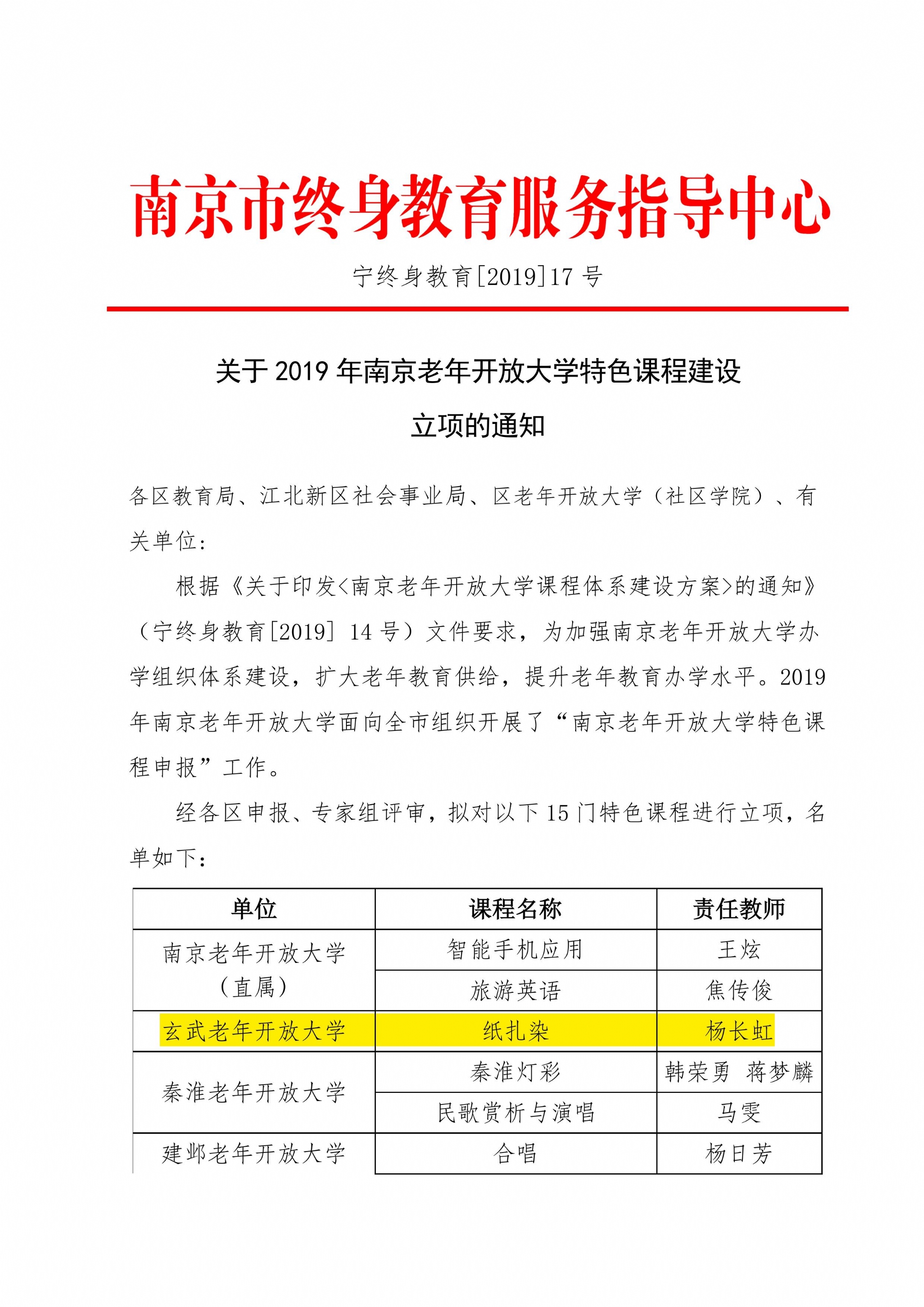 关于2019年南京老年开放大学课程体系建设立项的通知