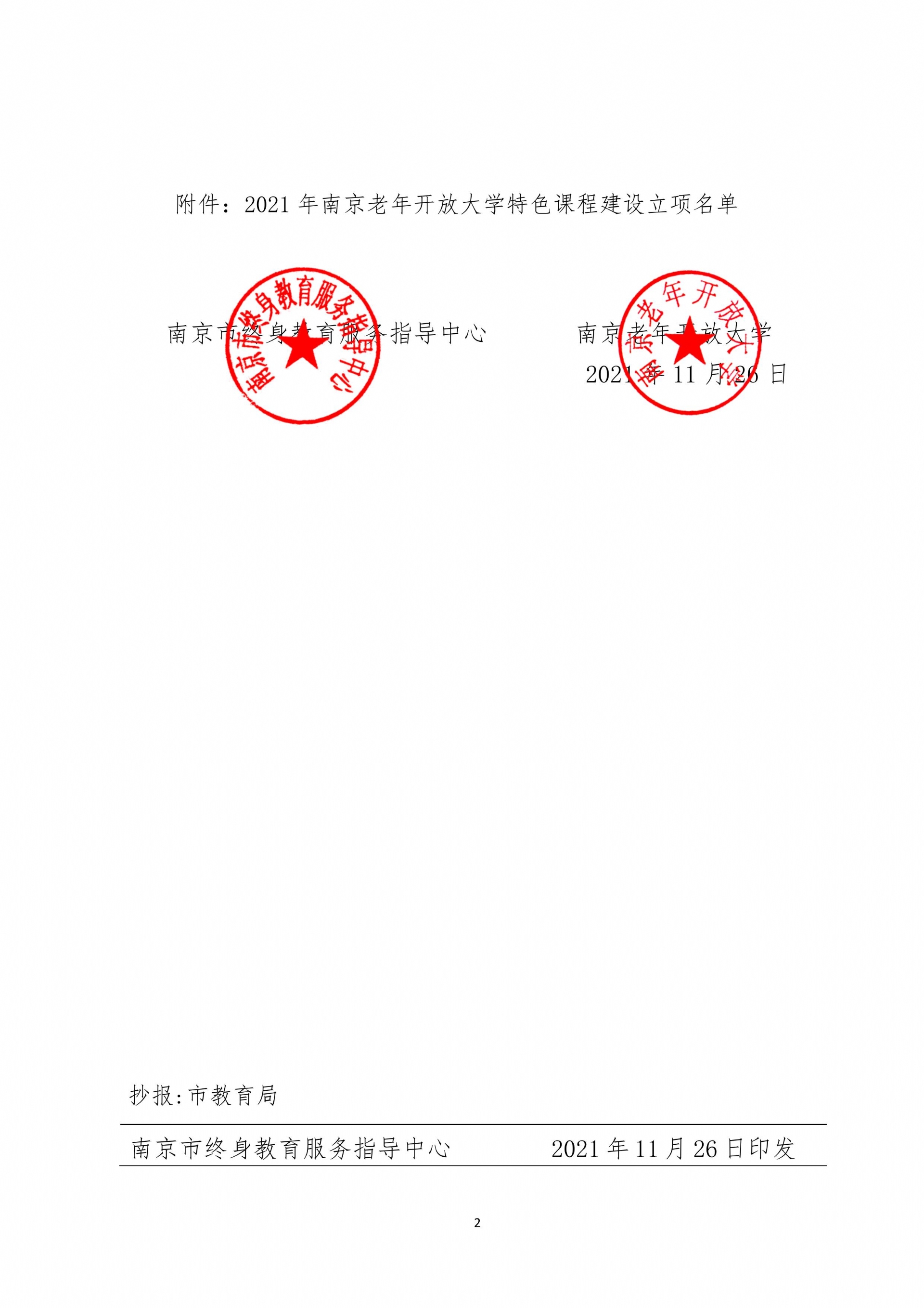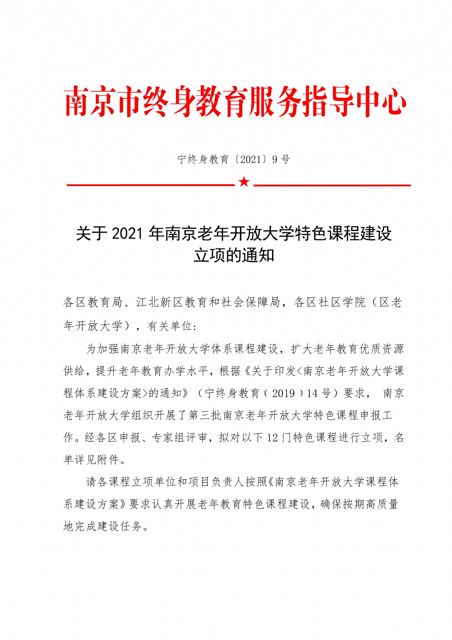 关于2021年南京老年开放大学课程体系建设立项的通知